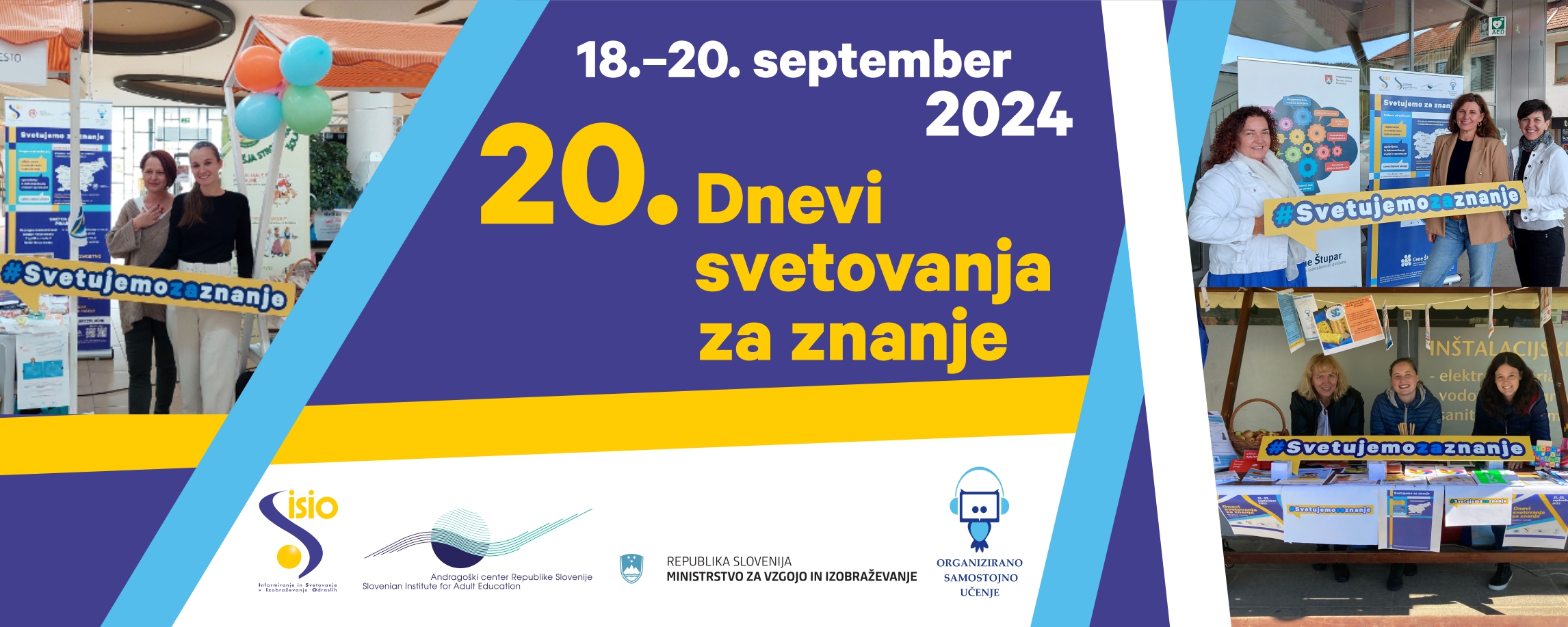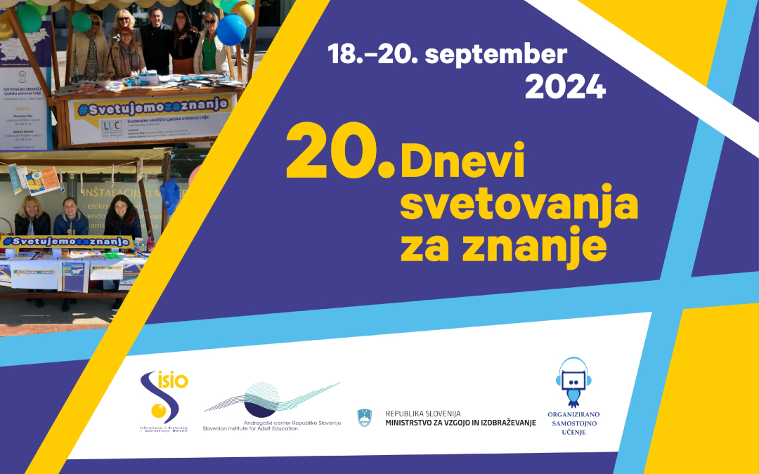 Tudi Dnevi svetovanja za znanje (v letih 2004–2020 smo jih imenovali Dnevi svetovalnih središč) so tovrstna dejavnost.  Med 18. in 20. septembrom bodo v mreži 35 LU, ki izvajajo svetovalno dejavnost kot javno službo, organizirani že dvajsetič. Svetovalci v IO bodo skupaj s partnerji na različnih mestih v lokalnem okolju izven svojih prostorov ponujali informacije, svetovanje in tudi konkretna izobraževanja. Predvsem pa bodo obiskovalce motivirali in spodbujali, naj stopijo na pot VŽU, letos s poudarkom na pridobivanju znanja za zeleni prehod.