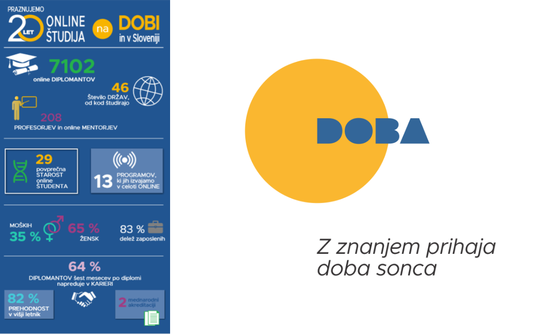 Obletnice so pomembne, so prelomnice, so trenutki za pregled uspehov in so trenutki za snovanje prihodnosti. Na DOBI smo ponosni na svoj jubilej, 20-letnico izvajanja študija na daljavo – online študija.