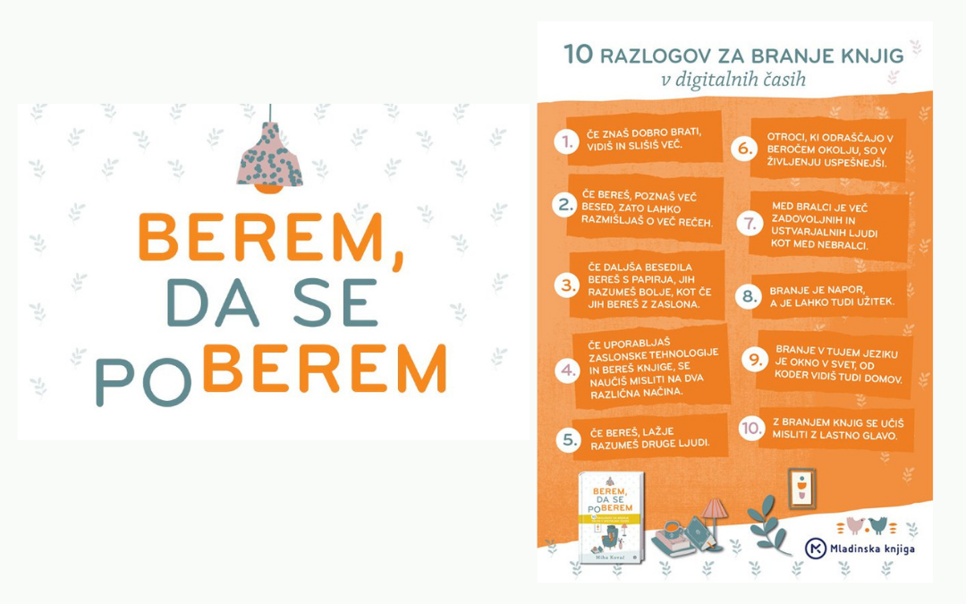 Knjižnica ACS je bogatejša za še eno knjigo: Berem, da se poberem avtorja Mihe Kovača. Gre za razmeroma drobno knjižico, ki je zelo skrbno pripravljena – primerna za sodobnega bralca, ki ga zanima, čemu brati v digitalnih časih. Je sploh kakšna razlika med branjem z zaslona in papirja? Kot pravi avtor, številne študije kažejo koristi klasičnega tiska. Na spletu dobimo ogromni informacij, ki jih običajno preletavamo, hitro se selimo z ene spletne strani na drugo, zato smo se navadili, da z zaslona ne beremo poglobljeno. S knjigami je drugače. Pred nami so črke, statične, ki nam omogočajo, da se lažje zberemo, pozabimo na zunanji svet in se vživimo.