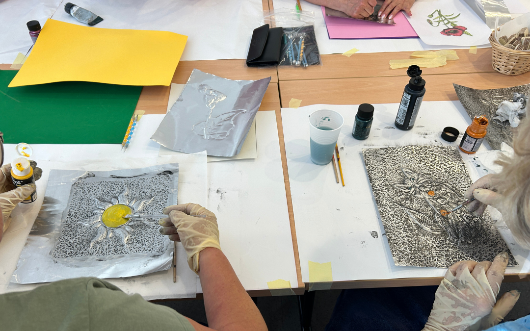 »Karla in Janja sta nas naučili tehniko ustvarjanja motivov na ALU folijo. Navdušena sem bila nad njunimi prelepimi slikami in izbiro motivov, med katerimi sem lahko izbirala za svojo sliko v tej tehniki. V teh štirih srečanjih je nastalo veliko čudovitih slik, vzdušje v skupini je bilo vedno prijetno, zagnano smo ustvarjali pod vodstvom odličnih umetnic. Hvaležna vsem.« – Vesna