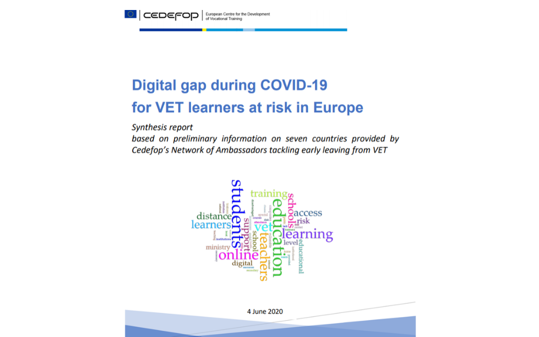 Cedefop je junija izdal kratko publikacijo o učenju na daljavo v času epidemije novega koronavirusa. Poudarjajo predvsem osip ranljivih skupin prebivalstva, ki jih je tudi v odličnih razmerah težko motivirati za učenje.