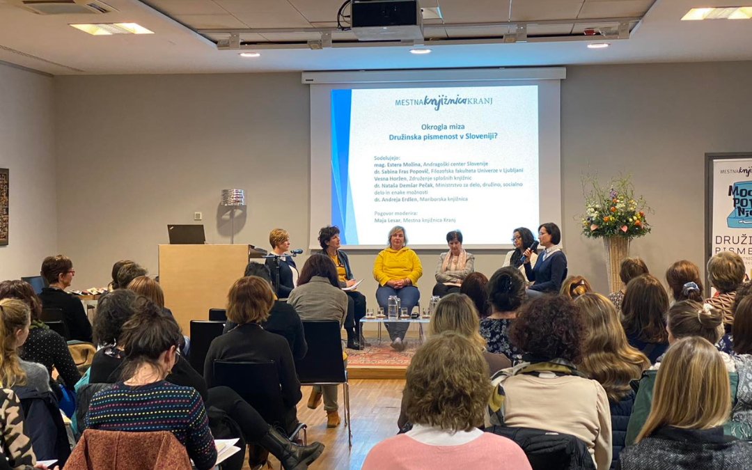 Pomen integralnega pristopa k dvigu bralne pismenosti v družinah je bil izpostavljen tudi na okrogli mizi, na kateri so sodelovale mag. Estera Možina, strokovnjakinja s področja pismenosti z ACS, dr. Sabina Fras Popović, dolgoletna knjižničarka Mariborske knjižnice in predavateljica na Oddelku za bibliotekarstvo, informacijske znanosti in knjigarstvo na FF v Ljubljani, Vesna Horžen, predsednica Združenja splošnih knjižnic, dr. Nataša Demšar Pečak z Direktorata za družino na MDDSZ, ter dr. Andreja Erdlen, vodja Centra za spodbujanje bralne pismenosti pri Mariborski knjižnici. Sodelujoče so ugotovile, da bo družina še naprej ostala topla greda pismenosti in da znanja in veščine, ki jih prejmemo v domačem okolju, ostanejo z nami vse življenje. Starši so motivirani za pomoč otrokom. Pripravljeni so narediti vse, da bi bili ti uspešni in zadovoljni, tudi brati. Vendar pa, kot je izpostavila mag. Estera Možina, je medgeneracijski prenos pismenosti močno zakoreninjen tudi v Sloveniji. Raziskave kažejo, da je v Sloveniji veliko staršev, ki so pri skrbi za spodbujanje branja in pismenosti v družini ovirani in nemočni. Najprej zaradi nižje izobrazbe in primanjkljajev v lastni pismenosti. Ti starši in njihove družine so v posebej neugodnem položaju tudi zaradi močno zakoreninjenega diskurza osebne odgovornosti za učni uspeh svojih otrok, ki je vseprisoten od devetdesetih let dalje. Če tudi izobraževalni sistem ne zmore nadomestiti primanjkljajev v socialnem kapitalu pri šolajočih otrocih, ker pričakuje od staršev, da skrbijo za učenje otrok, je krog sklenjen. Problema medgeneracijskega prenosa neugodne pismenosti ni mogoče rešiti samo z IO. Odrasli, ki imajo primanjkljaje v pismenosti, se namreč zelo neradi odločajo za izobraževanje. Dosedanje izkušnje pri izvajanju programov družinske pismenosti v Sloveniji (na primer programi Beremo in pišemo skupaj ter Branje za znanje in branje za zabavo), podobno kot na Nizozemskem, kažejo, da je mogoče s primernimi programi za celo družino opolnomočiti starše za vnašanje več pismenosti v družinsko življenje in njihovo lastno učenje. Pri tem je pomembno, da gremo strokovni delavci v družine in okolja, kjer se ti ljudje nahajajo, in programe prilagodimo njihovim potrebam. Kot je zaključila Vesna Horžen, morajo splošne knjižnice knjige in bralno kulturo pripeljati med ljudi. Tudi programi družinske pismenosti bi tako morali postati del redne javne mreže, preko katere bi bilo omogočeno tudi profesionalno izobraževanje.