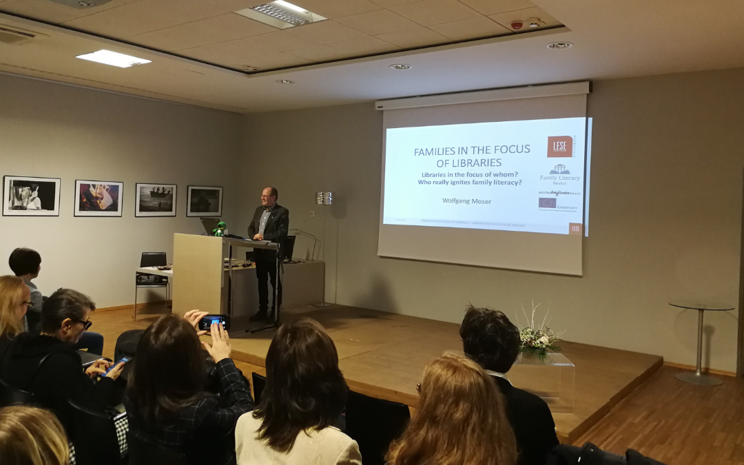 The presentation of the project was followed by a workshop. Tilka Jamnik, MA, a promotor of reading and an expert in the area of youth literature, showed a good example of working with children and their parents in a conversation with two families. Then, Dr Wolfgang Moser of Graz (Austria) introduced various activities implemented in his local area to encourage family literacy in libraries. I would like to highlight the so-called “bookstart”, a starting package that all families with pre-schoolers receive for free, and which acts as a family guide to the library for parents and children. The project also included STEM activities intended to attract fathers and children to the libraries.