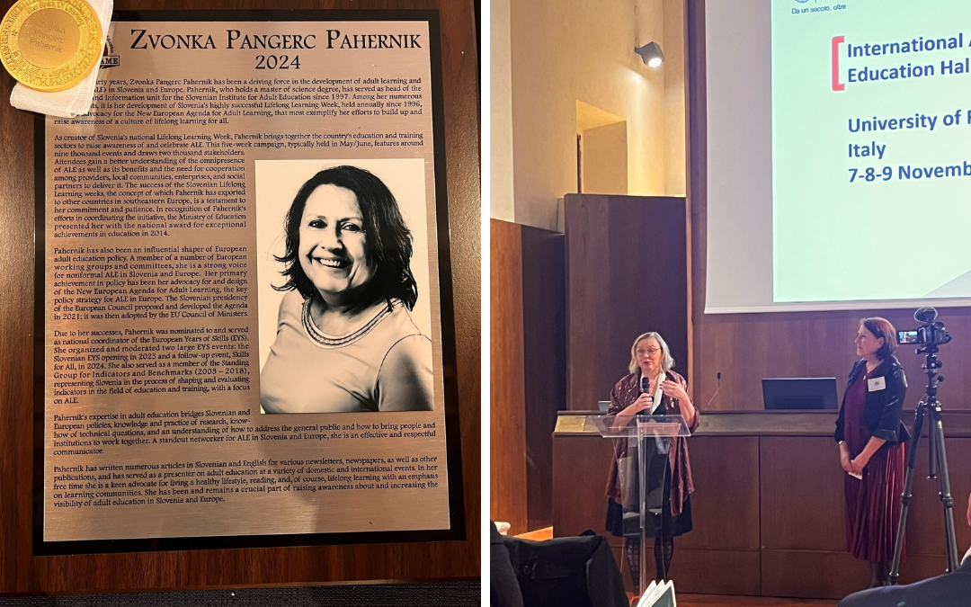 The conference, which gathered experts from around the world to address the current challenges and opportunities in ALE, and the ceremonial award ceremony both underscored the critical role of our field as a cornerstone for sustainable societal development. Zvonka’s recognition is an extraordinary achievement for Slovenia’s adult education community and proof that Slovenian expertise and dedication can make a global impact. Florence once again became the stage for stories that inspire the world to learn, collaborate and embrace change.