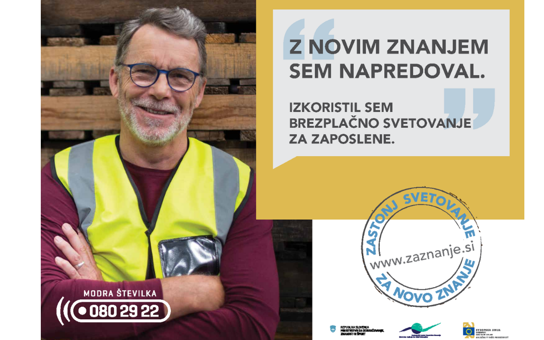 In October we launched a national promotional campaign of the Guidance for Employees project under the slogan Seize the opportunity of free counselling for employees (Professional support to information and guidance activities and validation of non-formal knowledge 2016–2022 – in Slovenian), whose goal is to address as many adults as possible and engage them in counselling for education.