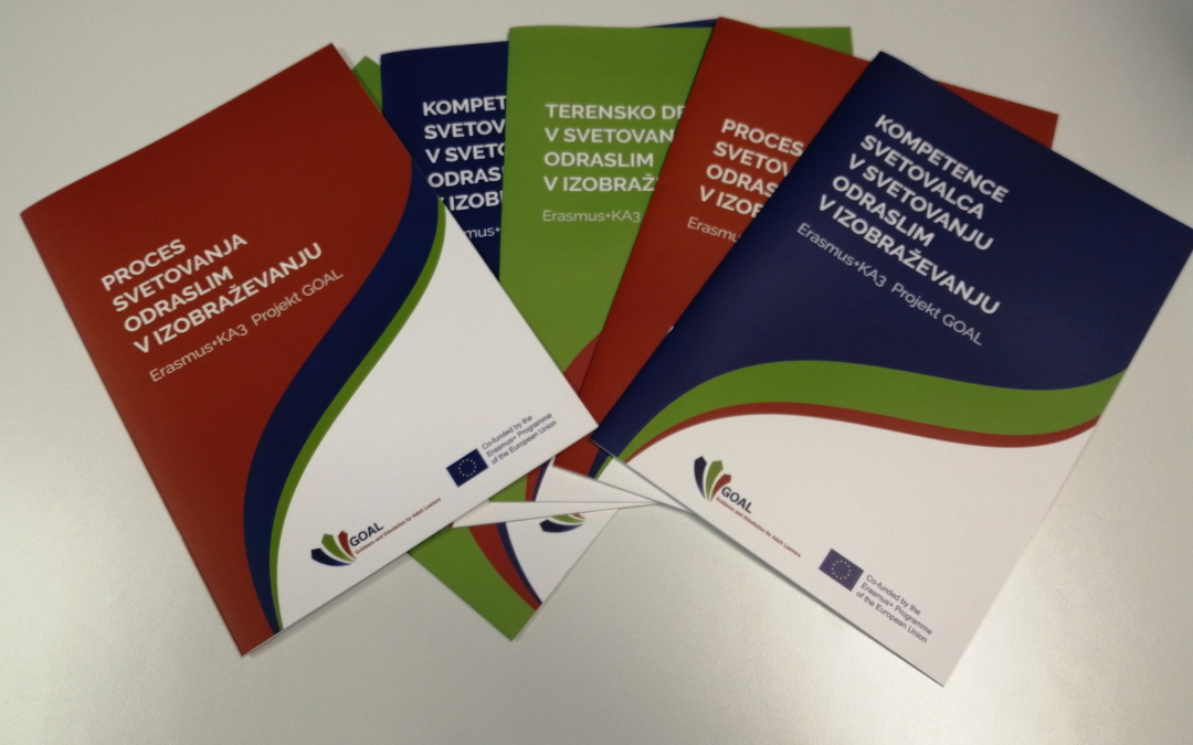 The manuals, titled Counsellor Competences for Guiding Adult Learners and Guidance Process for Adult Learners, were the result of the Erasmus+ KA3 GOAL project, which was successfully completed in 2018. In Slovenia, the project was led by the MESS (Ema Perme), in collaboration with the SIAE and the IRSVET. In addition to the aforementioned manuals, the manual Outreach in Guidance for Adult Learners was already published in 2018, and a fourth one on partnerships in guidance activities for adult learners is forthcoming. They are used to present the results of the project, which encompassed various areas of guidance work development. The objective was to increase participation of low-skilled adults, and other vulnerable groups of adults in education and learning.