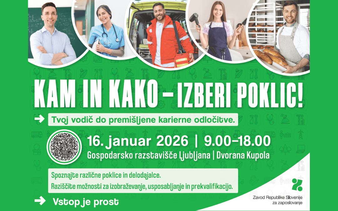 Dogodek je namenjen vsem, ki si želite zanesljivih informacij in osebnega stika s strokovnjaki. Na enem mestu boste spoznali obetavne poklice, možnosti izobraževanja in usposabljanja, poti do prekvalifikacije ter informacije o štipendijah in zaposlitvenih priložnostih.