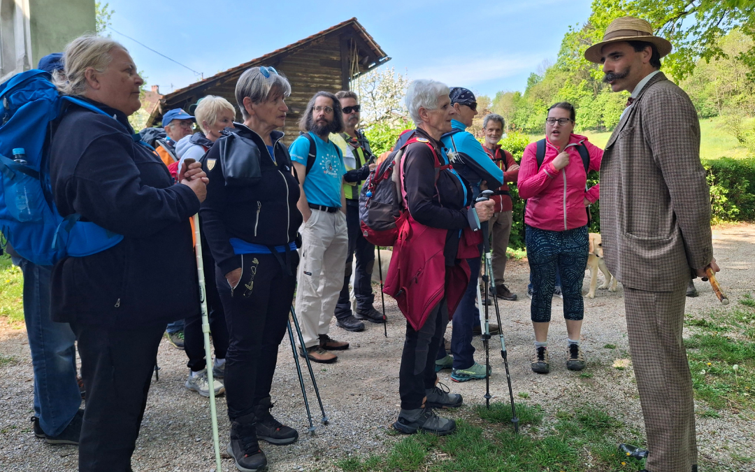 V nedeljo, 19. aprila, smo se pripeljali na Vrhniko, kjer smo povezali hojo, kulturo in učenje. Turistični vodnik in predsednik PD Borovnica Damjan Debevec nas je popeljal po Cankarjevih poteh. Zelo nazorno nam je predstavil življenje tega našega literarnega velikana od otroštva do konca življenja. Pravzaprav lahko rečemo, da nas je po poteh svojega življenja popeljal sam Ivan Cankar, saj ima Damjan Debevec ne samo prave cankarjanske brke ampak tudi zelo primerno opravo. Tako smo imeli občutek, da smo v družbi velikega literata.