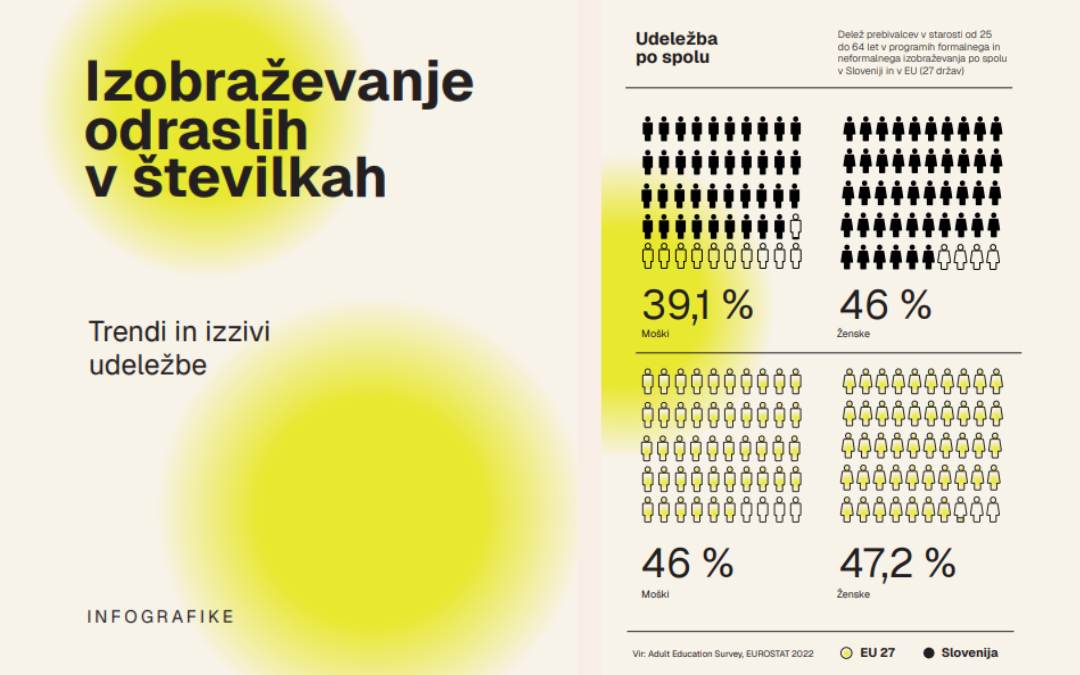 Publikacija izsledke predstavi z infografikami. Najširšemu občinstvu omogočajo hiter vpogled in razumevanje izobraževalnih trendov in potreb v Sloveniji in Evropi. Poudarjen je nacionalni del raziskave, ki odraža aktualne razmere in potrebe v izobraževanju odraslih v Sloveniji.