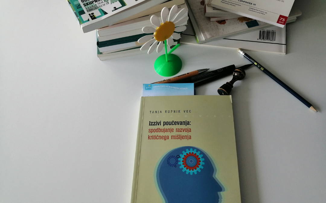 Knjiga Tanje Rupnik Vec z naslovom Izzivi poučevanja: spodbujanje razvoja kritičnega mišljenja je izšla leta 2011 pri ZRSŠ, pred kratkim pa je našla svoje mesto tudi na policah Knjižnice ACS. Monografija v šestih poglavjih razkriva različne modele in pristope h kritičnemu mišljenju. Avtorica podaja metode za merjenje tovrstnih spretnosti. 5. poglavje z naslovom Poučevanje kritičnega mišljenja je najbolj neposredno, navaja različne primere in vaje. V zaključnem poglavju je podan pregled raziskav tega pojava, med katerimi je posebno zanimiva predstavitev slovenske študije, opravljene v šolskem letu 2008/09. Osrednja raziskovalna vprašanja so bila vezana na učiteljev pogled na kritično razmišljanje, njegovo razumevanje tega pojava, vpliv subjektivnega mnenja o tem pojavu na poučevanje in zaznavanje sebe kot kritičnega misleca.
