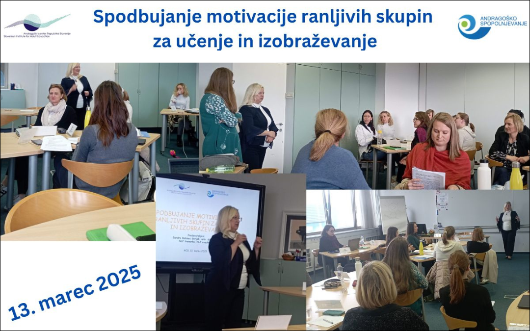 Na ACS smo 13. marca organizirali delavnico Spodbujanje motivacije ranljivih skupin za učenje in izobraževanje. Izobraževalci odraslih so pridobili konkretna orodja in strategije za učinkovito delo z ranljivimi skupinami.