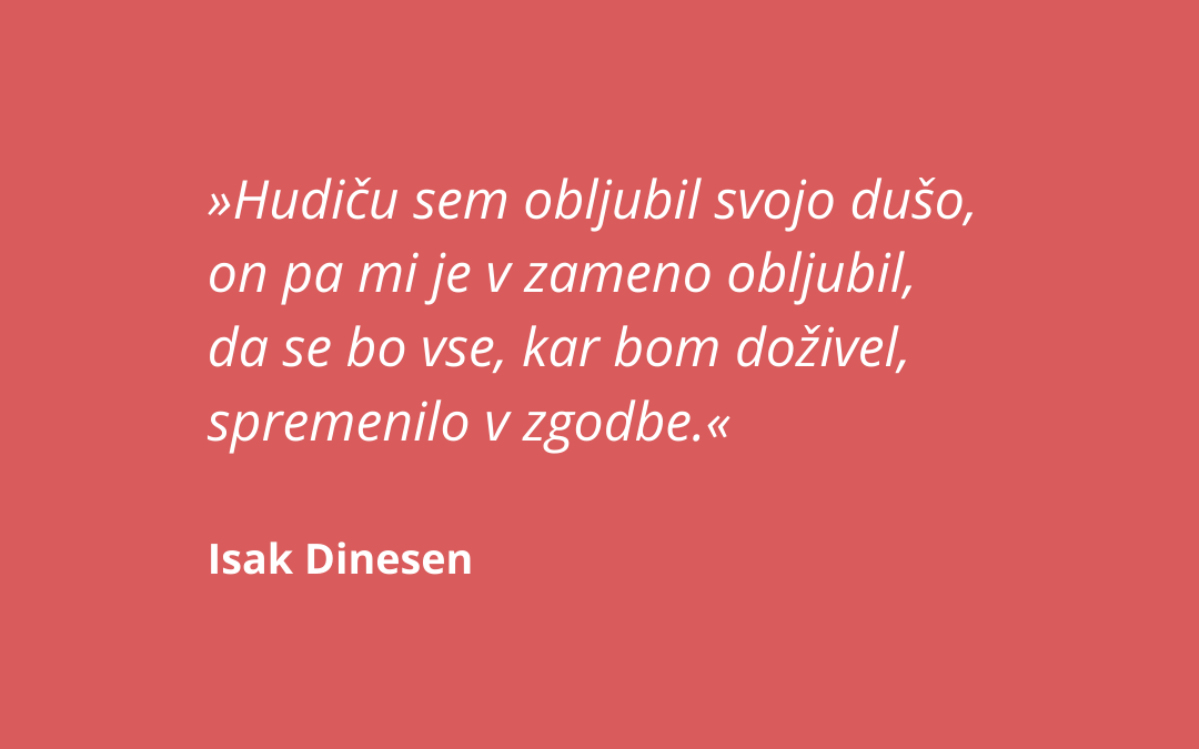 Včasih se znajdem v situaciji, ko bi morala napisati tedenski blog, pa mi nikakor ne steče. Ni miru (morda najbolj tistega notranjega), sodelavci si podajajo kljuko, misli so razpršene in skačejo od ene naloge k drugi, ali bolje k vprašanju, kaj je pomembneje … Ideje enostavno ni. Verjetno večina pozna tak občutek. Pravzaprav je to občutek nemoči. Pa še vedno vztrajam pred tipkovnico in praznim ekranom, po malem se že obsojam, ene same pametne misli, ob kateri bi steklo, pa še kar ni.
