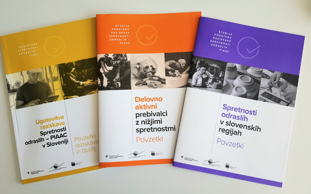 Zvesti bralci e-novičk ACS ste že zasledili, da smo v letošnjem letu pripravili tri knjižice povzetkov: Delovno aktivni prebivalci z nižjimi spretnostmi – povzetki, Ugotovitve raziskave Spretnosti odraslih – PIAAC v Sloveniji – povzetki raziskave in študij ter Spretnosti odraslih v slovenskih regijah – povzetki. Vse omenjene publikacije so bile namreč že podrobneje predstavljene v preteklih objavah (Delovno aktivni prebivalci z nižjimi spretnostmi – povzetki, Ugotovitve raziskave Spretnosti odraslih – PIAAC v Sloveniji – povzetki raziskave in študij ter Spretnosti odraslih v slovenskih regijah – povzetki).