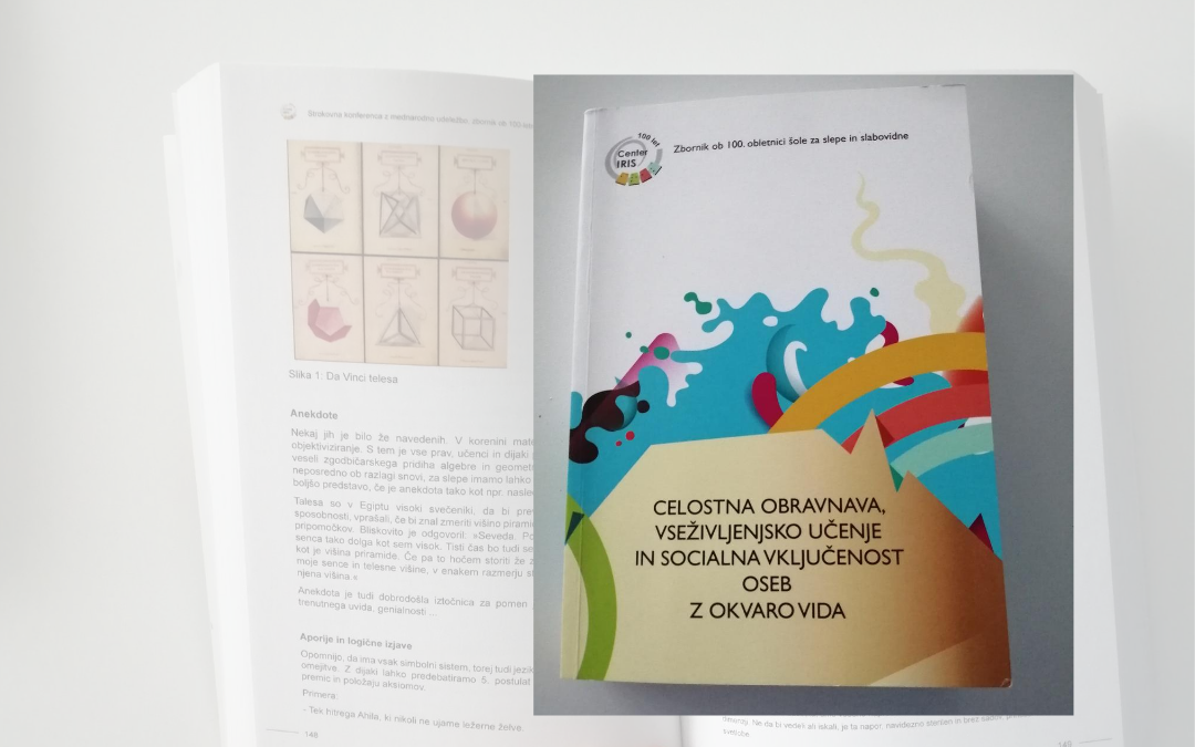Naslov prispevka je vzet iz zbornika z naslovom Vseživljenjsko učenje in socialna vključenost oseb z okvaro vida, ki ga je letos izdal Center IRIS ob 100-letnici šole za slepe in slabovidne. V uvodniku urednica navaja številne razloge za branje zbornika. Po pregledu kazala so ti jasni, saj ne gre le za spominsko izdajo, ki je izšla v 100 izvodih, ampak preplet številnih raznolikih vsebin, s katerimi se ukvarjajo v Centru IRIS. Učitelju, ki izve, da bo učil slepega ali slabovidnega, odgovori na številna vprašanja. Prinaša navdihujoče izkušnje iz inkluzije, konkretne primere poučevanja različnih predmetov in učenja številnih spretnosti na raznolike načine, zgodbe o ustvarjanju spodbudnega učnega okolja. Obsežna knjiga se konča s poglavji o Centru IRIS in ustanovah za slepe.