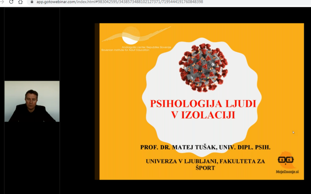 V četrtek, 9. aprila, je na portalu Moje znanje s promocijsko podporo ACS potekal spletni seminar z naslovom Psihologija ljudi v izolaciji. Vodil ga je psiholog dr. Matej Tušak.