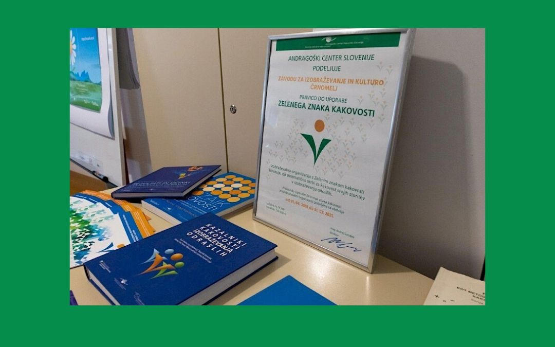 ACS podeljuje Zeleni znak kakovosti, da bi spodbudili organizacije za IO k vzpostavitvi in ohranjanju notranjega sistema kakovosti in izpeljavi procesov samoevalvacije. Znak, ki ga podeljujemo že petnajst let, potrjuje, da organizacija sistematično skrbi za kakovost IO. ZZK ohrani, če vsaka tri leta dokaže, da je pristop k samoevalvaciji v organizaciji sistematičen.