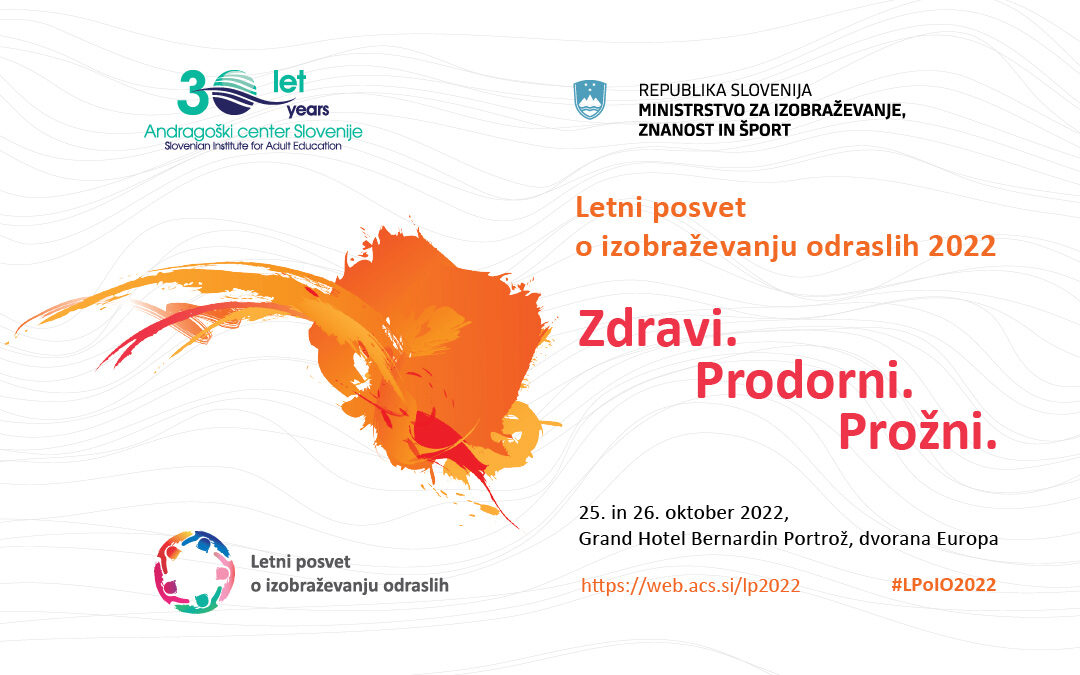 Delili bomo tudi izkušnje na področju zdravja v izobraževanju odraslih. Poskrbljeno bo za petje in ples. Pridružite se nam v Portorožu 25. in 26. oktobra.