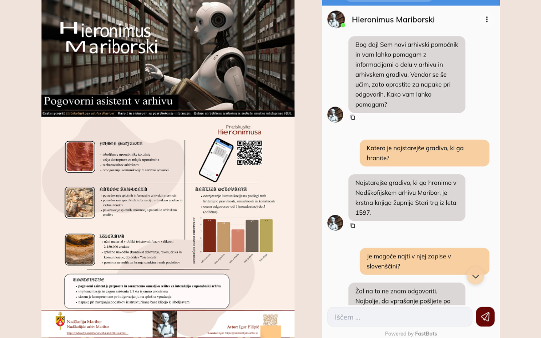 Organizatorji so nas povabili tudi k pripravi plakata. Odzval se je Igor Filipič iz Nadškofijskega arhiva v Mariboru. Hieronumus Mariborski je pogovorni asistent v arhivu. Izkazalo se je, da je prijazen mož, ki pove, kar ve. Ko česa ne ve, nas usmeri na pravi naslov. Krasno, nobenega zavajanja. Avtor je za plakat dobil nagrado – naročnino na aplikacijo, ki omogoča skeniranje arhivskih dokumentov.