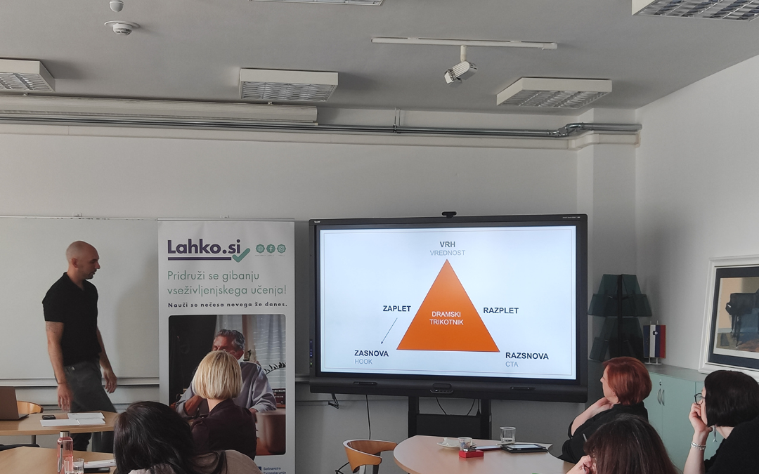 Na usposabljanju smo se posvetili ustvarjanju videovsebin. Predavatelj nam je predstavil nekaj vsebinskih poudarkov in praktičnih napotkov za snemanje. Pokazal nam je aplikacijo, ki nam je v pomoč pri končnem urejanju videa.