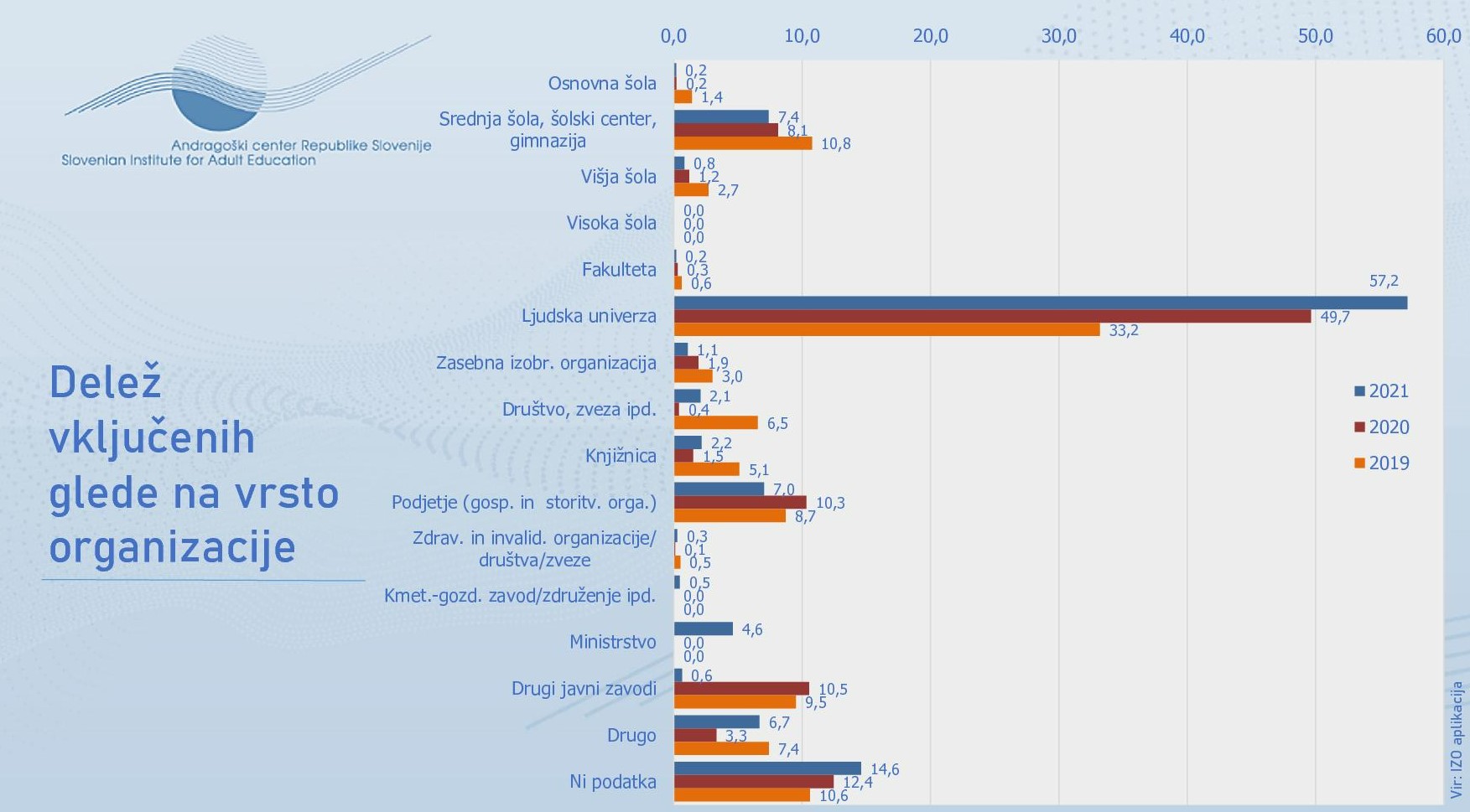 V skupino Ni podatka štejemo udeležence, ki se na programe prijavijo kot posamezniki in ob tem ne navedejo organizacije, v kateri so zaposleni – mednje štejemo tudi študente, brezposelne in upokojene osebe.