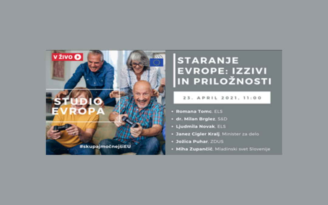 Posvet v Studiu Evropa 23. aprila je tekel na daljavo, posnetek si je mogoče ogledati na YouTubu in strani Studio Evropa na FB. Vprašanja so bila naslovljena na ministra za delo, družino, socialne zadeve in enake možnosti Janeza Ciglerja Kralja, podpredsednico ZDUS Jožico Puhar, predsednika MSS Miha Zupančiča ter tri evropske poslance: Romano Tomc, Milana Brgleza in Ljudmilo Novak.