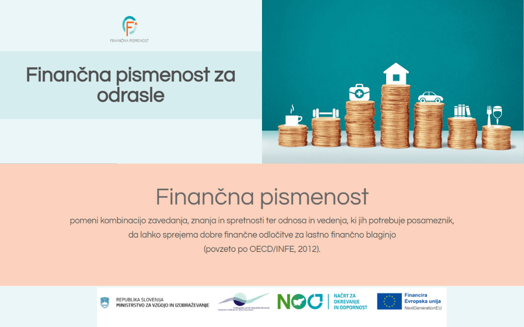 Ob koncu leta 2022 smo zagnali projekt Finančna pismenost za odrasle, v okviru katerega bomo razvili nove javnoveljavne in neformalne izobraževalne programe na tem področju.