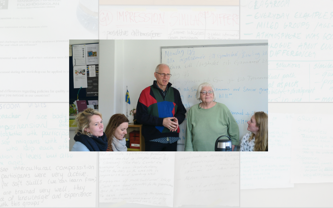 Povzeto zelo na kratko, smo na Švedskem imeli priložnost poslušati in izmenjati dobre prakse s predstavniki partnerskih organizacij v zvezi z obravnavano vsebino – zagotavljanje kakovosti v povezavi z izobraževanjem ter družbeno integracijo migrantov in beguncev. Posebej velja izpostaviti, da je v večini partnerskih držav v zadnjih letih v izobraževalnem sektorju prišlo do sprememb (npr. nova zakonodaja na tem področju), da je v vseh državah krog kakovosti v središču sicer različnih pristopov za presojanje in razvijanje kakovosti, da se v vseh državah izvaja spremljanje izobraževanja odraslih na nacionalni ravni (npr. dosežki udeležencev, uspešnost ipd.), da lahko med indikatorji za spremljanje in presojanje kakovosti najdemo zelo veliko podobnosti ter da morajo učitelji imeti za delo na področju kakovosti posebna znanja.