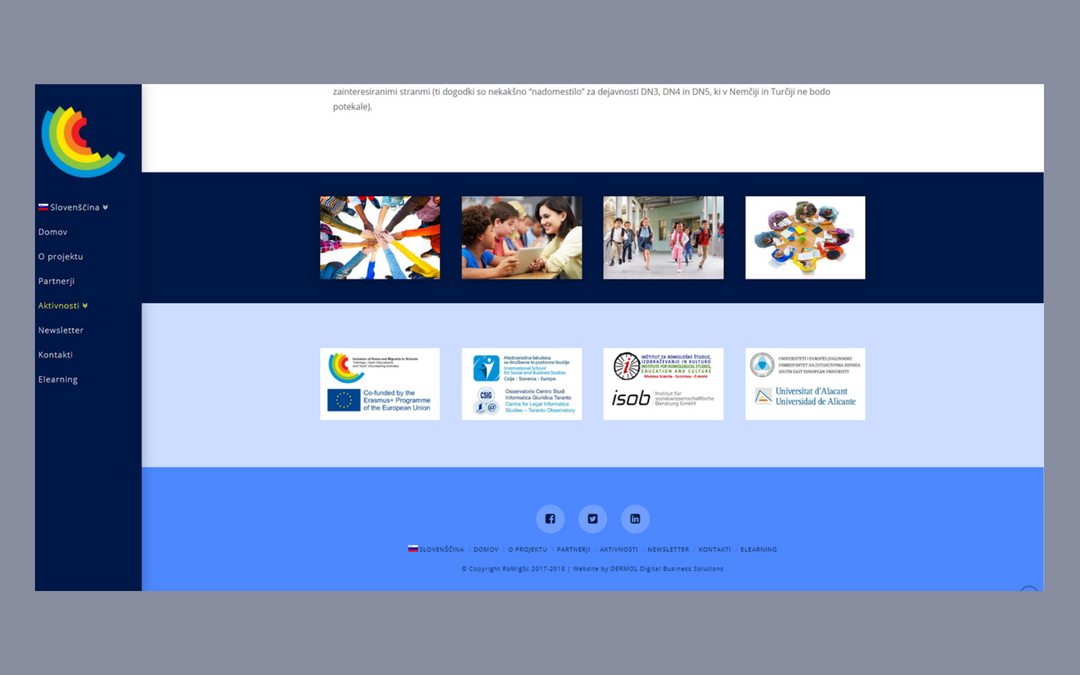 Projekt Vključevanje Romov in migrantov v šole: usposabljanja, odprte razprave in prostovoljne dejavnosti mladih (RoMigSc) zaokrožuje področje vključevanja Romov in migrantov v učna okolja s pomočjo usposobljenih učiteljev in prostovoljcev ter spodbuja vključevanje mladih v prostovoljno delo na način formalnega priznavanja njihovega dela. Projekt RoMigSc želi z izvedbo različnih aktivnosti podpreti boljšo vključenost Romov in migrantov v izobraževanje.