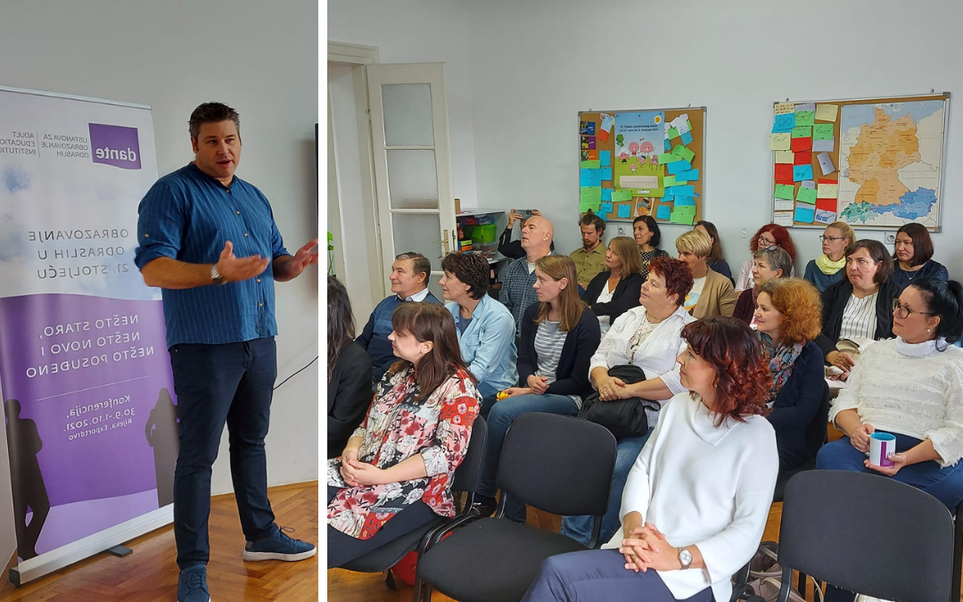 Na Reko smo se pripeljali dva dni po močnem neurju. Razen po nekaj potopljenih čolnih in naraslih ter motnih vodah ni bilo videti, da je bilo vreme tako silovito, da so imeli celo smrtno žrtev. Na cilju nas je pričakala nasmejana ekipa sodelavcev ustanove Dante. Po ogledu prostorov so nam predstavili svoje delo v projektih EU in druge izzive. Zanimiv se nam zdi vavčerski sistem za brezplačno vključitev odraslih v izobraževanje. V diskusiji o tem so kolegi iz organizacije Dante predstavili tudi dileme in ovire, s katerimi se pri tem srečujejo. Velik zalogaj je zanje opredelitev zelenih delovnih mest, za katera morajo v okviru sistema izpeljevati izobraževanje. Dotaknili smo se tudi konflikta interesov izvajalcev izobraževanja znotraj tega sistema.