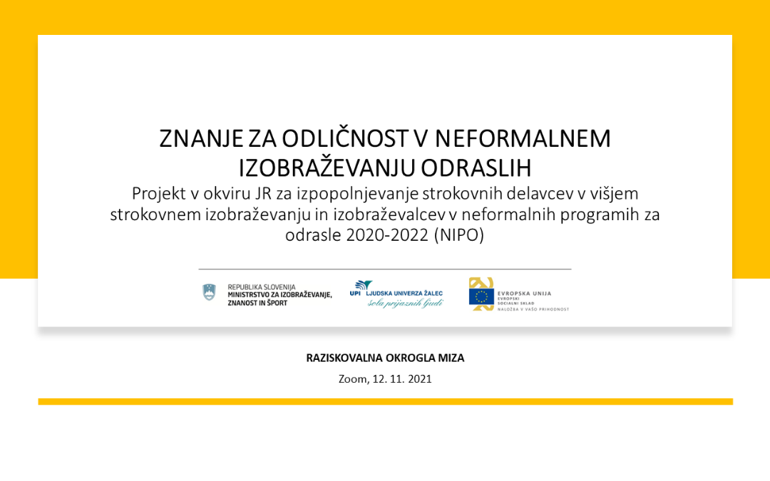 2. 11. 2021 smo na daljavo izvedli vmesno raziskovalno okroglo mizo, na kateri smo strokovno javnost in deležnike projekta seznanili z rezultati izvajanja projekta. Ključne ugotovitve smo objavili na spletni strani.