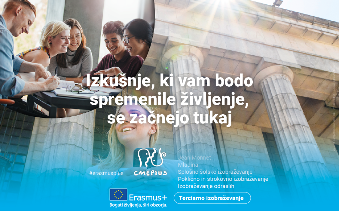 Prvi rok za oddajo projektnih predlogov na razpisu 2023, in sicer za projekte mobilnosti posameznikov (KA1), se izteče že 23. februarja! V januarju smo izvedli več predstavitvenih seminarjev in na njih predstavili značilnosti posameznih akcij (projekti mobilnosti, manjša in sodelovalna partnerstva). Gradivo z dogodkov je na voljo v naši knjižnici. Če pri pripravi svojega predloga potrebujete pomoč, vas vabimo, da se obrnete na CMEPIUS-ove svetovalce ali se naročite na individualno svetovanje.