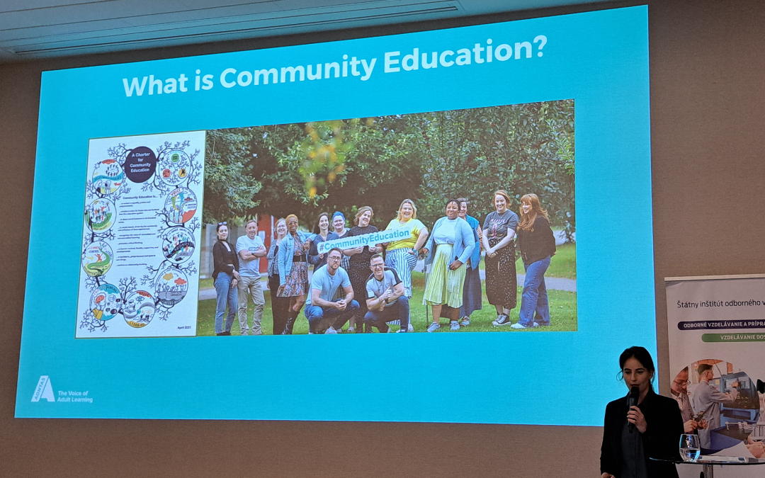 Slovaške prispevke je dopolnila tuja gostja Larisa Șioneriu iz AONTAS, Irska. Predstavila je skupnostno izobraževanje kot obliko druge priložnosti za ljudi, ki prej niso imeli možnosti za šolanje – na primer za posameznike iz marginaliziranih skupin ali enostarševske družine.