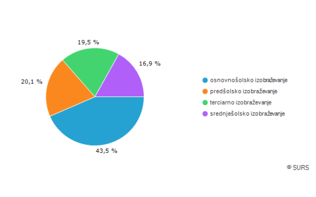 V strukturi celotnih izdatkov za izobraževalne ustanove so predstavljali: 20,1 % izdatki za predšolsko vzgojo in izobraževanje, 43,5 % izdatki za osnovnošolsko izobraževanje, 16,9 % izdatki za srednješolsko izobraževanje ter 19,5 % izdatki za terciarno izobraževanje.
